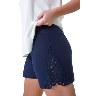 Secret SalesLace Trim Stretch Elastic Waist Shorts from Roman. Our staple Summer shorts just got better! Crafted from a buttery bengaline fabric that is so soft on the skin, it is easy to pull on and go for those warm weather plans. They are finished with a stretch elasticated waistband and trimmed with feminine lace details, just like our bestselling cropped trousers. Pair these with vest tops and sandals for easy holiday dressing or opt for a floaty blouse and wedges for a barbeque with friends this season!
