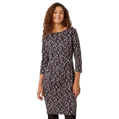 Add a splash of colour to your wardrobe with this vintage ponte dress with pockets adorned with a rich autumnal leaf print. The flower all over patterned print is classic and will be a staple in your wardrobe year after year. Available in check print, animal print, and floral print. Wear this pocket detail stretchy dress over leggings to casual days, from desk to dinner or just as workwear in the office desk job. These elegant slimming capri dresses are ideal for dressing up with a blazer and heels or adding tights and boots for those colder days. This beautiful boho chic comfortable shift dress has no fastenings but is made of a soft stretch material that is easy to pull on over the head. For maximum comfort, this pretty pencil dress has a relaxed and flattering shape. This nice cute warm flowy foxy straight dress is machine washable. This retro loose fitting bohemian dress is suitable for evening cocktail party, afternoon tea, going out, christenings, wedding guests, valentines, formal business occasions, festive occasions. This fitted dress is suitable for autumn, winter, spring, summer. Available in abstract print, abstract leaf print, check print, animal print, geometric print, ditsy floral print, checked print, leopard prints, tiger prints, and floral print. This oversized dress is suitable for younger and older elderly mature ladies. Available in 3/4 / three quarter sleeve and knee length.