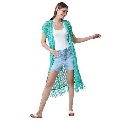Roman Womens Longline Shimmer Tassel Knit Kimono Green Size 18 UK