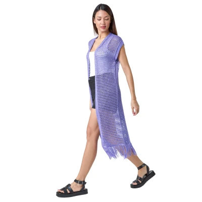 Roman Womens Longline Shimmer Tassel Knit Kimono Purple Denim Size 12 UK