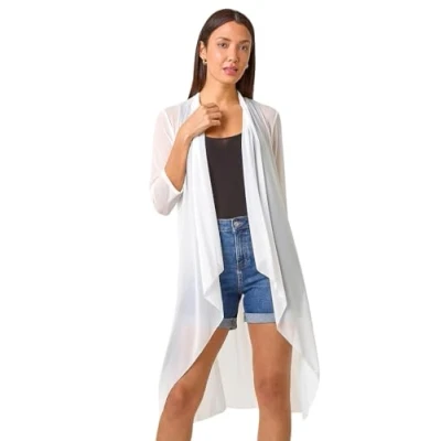 Roman Womens Mesh Longline Kimono Ivory Size 20 UK