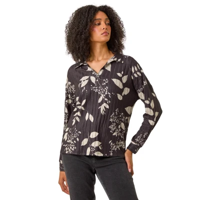 Secret SalesMono Floral Collared Top from Roman. Elevate your Autumn wardrobe with this stylish print collar top. Embrace the season with the all-over mono floral print that adds a touch of femininity to any look. This top features a flattering v-neck, chic collar, and classic long sleeves, all crafted from a luxurious ribbed fabric. Pair it with your favourite jeans and ankle boots for a sophisticated and on-trend outfit that transitions effortlessly from day to night!