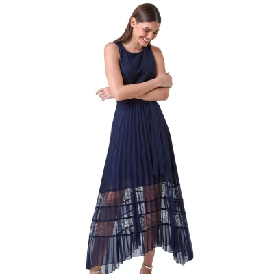 Roman Womens Pleated Lace Detail Midi Dress Blue Size 16 UK
