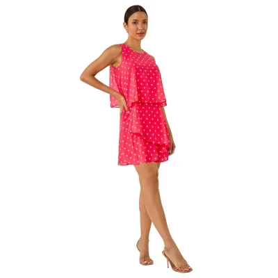 Roman Womens Sleeveless Polka Dot Print Tiered Playsuit Pink Size 12 UK