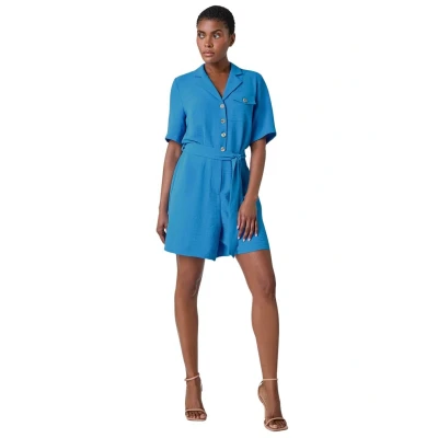 Roman Womens Textured Tie Waist Playsuit Blue Size 20 UK
