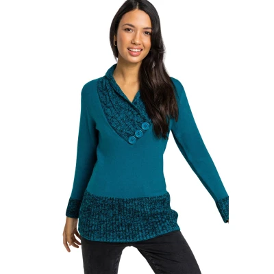 Secret SalesV-Neck Overlap Button Detail Jumper from Roman. As the weather turns colder and Autumn begins to creep in, update your everyday wardrobe with this longline two-tone jumper. Finished with button neck detailing and a wrap over v-neck style, this flattering sweater has a plush texture and comfy long sleeves. Complete the look with your favourite jeggings and boots for a winter walk in the park!