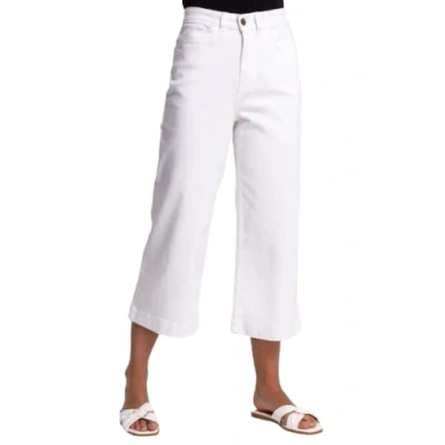 Roman Womens Wide Leg Cotton Jeans Stretch Denim Culottes Cropped Capri Pants White Size 14 UK