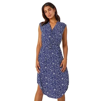 Unleash your wild side with the Zip Detail Animal Print Dress, a captivating addition to your summer and spring wardrobe. This dress features a fierce navy animal print that exudes confidence and style. The v neckline adds a touch of allure, beautifully framing your neckline and collarbones. Embrace the sleeveless design, allowing you to stay cool and comfortable during warmer seasons. The zip detail adds a modern and edgy touch, making a statement and adding visual interest to the dress. With its knee length, this dress strikes the perfect balance between sophistication and ease. Embrace your wild side with this zip detail animal print dress, a perfect choice for making a statement and showcasing your unique sense of style. Complete your ensemble by pairing this dress with stylish wedges, adding height and a touch of elegance. Carry a denim bag to complement the outfit, enhancing its casual and chic appeal. The length of this Dress is approx 114cm. Please click our store link to visit our Roman shop and see our entire range.
