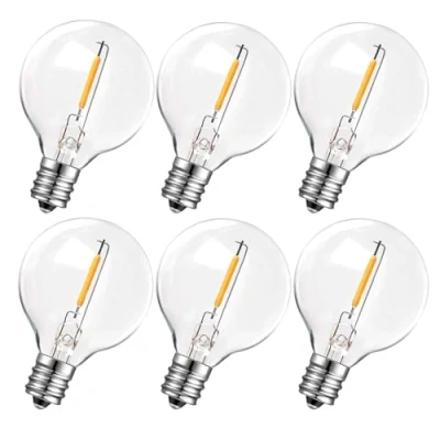💡【Perfect G40 LED Replacement Bulbs】G40 bulbs with E12 base, Made of clear glass with the shape of a vintage globe and 2200K warm white, creating a retro and cozy warm ambiance for home or commercial occasions. ⚠️🚫Warm Tips: they don't work with solar-powered lights or any low voltage lights. 💡【High-efficiency Energy Saving】1W LED bulb, equivalent to a 10-watt traditional incandescent bulb, AC 220-240V, 2200K warm white, energy-efficient lighting. Save up to 85% on your energy bill. 💡【Easy to Install】This G40 bulb is easy to install, suitable for lights with an E12 base, vintage style, and Edison screw bulbs. With over-temperature protection, overload protection & short circuit protection, Plug and Play. 💡【Widely Application】Suitable for both indoor and outdoor use. G40 bulbs are widely used for festoon garden lights, porch lights, backyard lights, party decor strings, wedding decor bulbs, gazebo string bulbs, tent bulbs, umbrella bulbs, etc. One box of bulbs, multiple uses. 💡【G40 LED Light Bulb】For both indoor and outdoor use. For G40 LED string lights, please search asin# B094QQLYKX. Perfect replacement bulbs for the G40 LED party string lights.