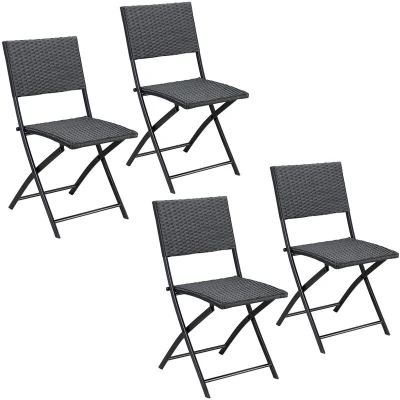 Rome Poly Rattan Folding Garden Chairs 2/4 Piece Set Outdoor Patio Furniture Foldable Balcony Terrace Camping Beach Bistro Conservatory Kitchen
