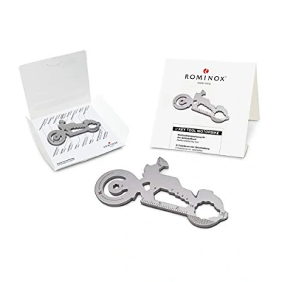 Multi-tool (made of robust stainless steel) for the key chain. Dimensions: approximately 7.5 x 3.9 x 0.23 cm. Available in 10 designs Includes function description and ROMINOX cardboard packaging. Key tool with 21 functions: 8 hex keys, 2 spoke square, 2 slotted screwdrivers, 1 nail puller, 1 Phillips screwdriver, 1 cable puller / thread separator 1 bottle opener, 1 shopping trolley remover, 1 cm ruler, 1 inch ruler, 1 tyre tread knife (1.6 mm), 1 nail file An original birthday gift or Christmas gift or for yourself. Suitable for men and women as well as teenagers, Weight: 0.0440924524 pounds, Manufacturer: ROMINOX
