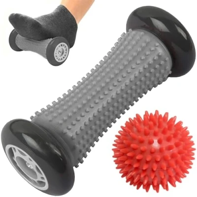 【ERGONOMIC DESIGN】Dense spiked surface of the massage rollers target trigger points, eliminate knots and relax tight muscles. Deep-tissue release for stiff necks, tense shoulders and sore backs 【EASY TO USE 】The foot massager roller is simple to use. Keep massage roller on a smooth surface, put your foot on it and roll it repeatedly. It promotes blood circulation and improves sleep quality 【MULTIFUNCTIONAL USE】ROMIX foot massager for plantar fasciitis can be used for all sorts of muscle pain. Perfect for targeting all areas of foot, calves, hamstring, legs, hand, wrist and shoulder 【DURABLE CONSTRUCTION】This muscle roller stick is made of sturdy steel bearing which is covered with environmental friendly rubber. It doesn’t hurt or damage your skin so enjoy without any worry 【PORTABLE AND LIGHTWEIGHT】Our exercise roller is small enough to fit into your backpack. Easy to carry and can be used anytime anywhere you want such as in home, office, outdoor, gym, yoga class