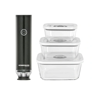 ROMMELSBACHER Hand Vacuum Sealer Set VAC 253/S, Vacuuming in Seconds, One Operation, Powerful, Durable Battery, Charging via USB, Includes 8 Zip Bags, 3 Glass Containers