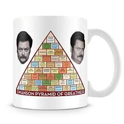 Ron Swanson's Pyramid of Greatness Birthday, Secret Santa Unique 11oz White Ceramic Mug Coffee Tea Mug.