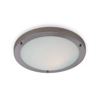 Rondo 1 Light Flush Ceiling Brushed Steel, Opal Glass IP54, E27