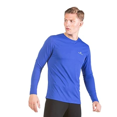 Ronhill Men's Core L/S Tee T Shirt, Drk Cobalt/Bright White, XL UK