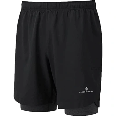Ronhill Men's Life 7" Twin Casual Shorts, Black/Charcoal Marl, S UK