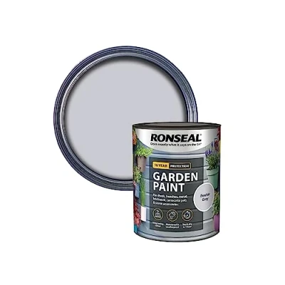 General description This Ronseal Garden Paint in Pewter Grey (750ml) is designed to enhance the beauty of your garden by adding color to various surfaces, not just wood. It can be applied to metal (may require a primer), terracotta, brick, and stone, providing waterproofing and improved water repellency. With its high solid content, it ensures a thick film for long-lasting protection, resisting cracking and peeling. Technical specifications Size: 750ml Color: Pewter Grey Coverage: 12 square meters per liter Drying time: Rainproof in 1 hour Allow 4 hours between coats Installation Apply on clean, dry surfaces Follow standard painting procedures, including priming if necessary for metal surfaces Usage Apply with a brush, roller, or spray For best results, ensure even coverage To achieve optimal color and protection, apply 3 coats If painting a light color over a darker one, additional coats may be needed Other information