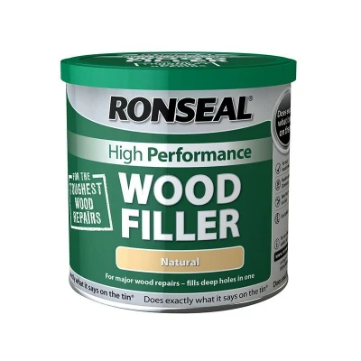 General description Ronseal High Performance Wood Filler is a chemically bonded filler and catalyst designed for tough repairs to virtually any wood damage without shrinking or cracking. It is suitable for both interior and exterior wood repairs, particularly effective for areas more than 5mm deep, such as window frames, sills, doors, and door frames. This high-performance filler is available in Natural, Dark, or White colors and comes in a 3.7kg tub with a re-sealable lid. Technical specifications Size: 3.7kg Colour: Natural Drying Time: approx. 30 minutes Protection Level: Very High Durability: Flexes with the wood to prevent shrinking or cracking Finish: Matt VOC: Medium Installation For best results, remove any soft wood if repairing rotten wood and treat it with Ronseal Wood Hardener. Mix a pea-sized amount of hardener with a golf ball-sized amount of filler until uniform in color. Pack the filler into the hole, leaving some raised above the surface, and smooth it over with a