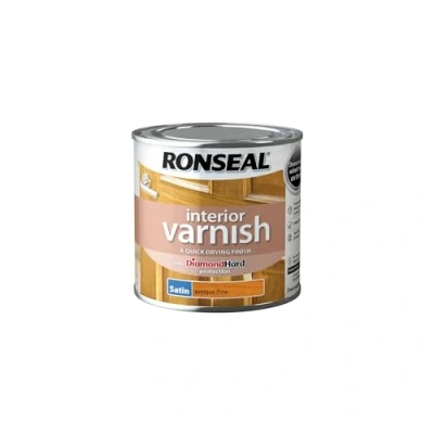 General description Ronseal Interior Varnish Quick Dry Gloss Dark Oak is a premium varnish designed to provide a beautiful, natural finish while offering Diamond Hard protection. This quick-drying formula ensures that your wooden surfaces are protected against heat, scratches, and water, making it ideal for interior wood applications. Technical specifications Size: 750ml Colour: Oak Finish: Gloss Touch dry in: 20 minutes Recoat after: 2 hours MPN: 36850 EAN: 5010214868506 Installation Ensure the room is warm and well-ventilated. Prepare the wood by cleaning it with a cloth and white spirit to remove any wax, grease, dirt, or oil. Sand the surface with 120 grit sandpaper to smooth out rough patches. If there is an old coating, sand away any peeling or flaking areas. Wipe away dust with a damp cloth and allow the wood to dry thoroughly before varnishing. Stir the varnish well before application. Test the colour on a hidden area to ensure satisfaction. Apply an even layer of varnish in