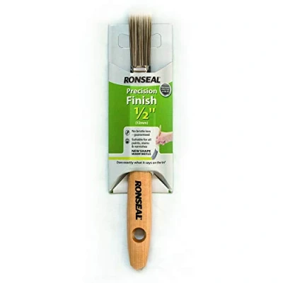 General description Guaranteed not to leave bristles in your paint, the Ronseal Precision Finish Brush - 0.5 Inch features shaped bristles for accurate application. It is designed for use with all stains, paints, and varnishes, ensuring a great finish every time. Technical specifications Brush width: 0.5 Inch Material: Responsibly sourced, Forest Friendly timber Bristles: Synthetic, designed to hold lots of paint Usage This brush is ideal for covering large areas quickly and accurately with various types of paint, stains, and varnishes.