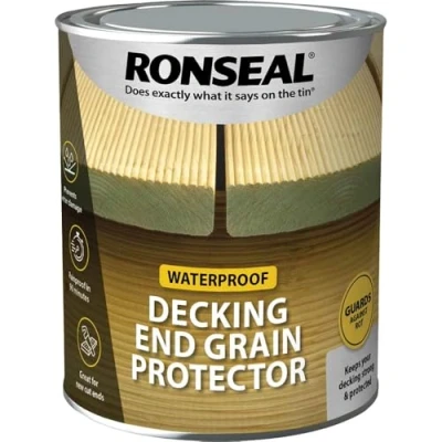 Amazon MarketplaceRonseal decking end grain preserver protects the cut ends of decking from rot, decay and fungi to keep the wood strong The preserver can be painted over with decking stain or oil to give it the ultimate weather protection Easy to use Requires two coats for maximum protection Allow four hours between coats, Weight: 1.90920318892 pounds, Manufacturer: Ronseal