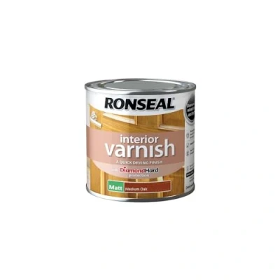 AmazonThe Ronseal RSLIVMMO250 Interior Varnish Matt Medium Oak comes in the following: It delivers superior protection against heat, scratches and water Quick drying, touch dry in 20 minutes, Weight: 0.6834330122 Pounds, Manufacturer: Ronseal