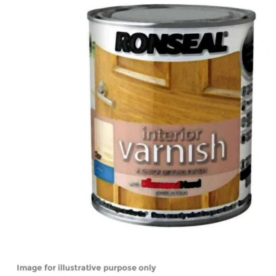 General description Ronseal Interior Varnish is a quick-drying, diamond-hard protective finish designed for interior wood surfaces. It provides superior protection against heat, scratches, and water while enhancing the natural appearance of the wood. This varnish dries to the touch in approximately 20 minutes and can be recoated after 2 hours, offering a fade-resistant, smooth satin finish suitable for various interior wood applications. Technical specifications Color: Clear Finish: Satin Size: 250ml Compatibility and accessories Suitable for bare or previously varnished wood surfaces Not suitable for painted wood Installation Prepare the wood surface by cleaning with a cloth and white spirit to remove grease and dirt. Sand the surface with 120 grit sandpaper to smooth rough patches and remove old flaking coatings. Wipe away dust with a damp cloth and allow the wood to dry thoroughly. Stir the varnish well before use and test on a hidden area to check color and finish. Apply an even