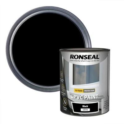 General description Ronseal uPVC Paint revitalizes uPVC windows and doors with a long-lasting, durable, and flexible formula that prevents cracking and is resistant to mould and stains. It is designed to withstand harsh weather conditions and maintain its appearance over time. The paint can be applied directly to the surface without the need for a primer and dries to a waterproof finish in just 1 hour. Technical specifications Usage: Suitable for bare or previously painted uPVC doors, windows, and trims Coverage: Approximately 6.5m² per litre Dry time: Showerproof in 1 hour Recoat time: 4 hours Number of coats: 2 (may require a third coat over dark colours) Finish: Satin Durability: Up to 10 years of protection Application methods: Brush, roller, or sprayer Paint base: Water-based Available sizes: 750ml and 2.5L VOC: Low Installation Ensure the surface is clean, dry, and free from dirt, dust, and grease before painting Lightly sand the surface with 180-220 grit sandpaper for a smooth