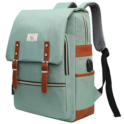 Ronyes College Bag Fits up to 15.6’’ Laptop Casual Rucksack Waterproof Business Travel School Backpack Daypacks with USB Unisex(LightGreen)