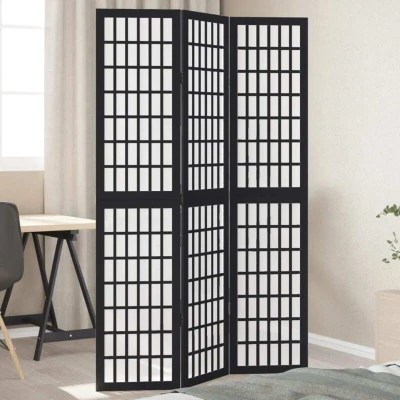 Room Divider 3 Panels Black Solid Wood Paulownia vidaXL