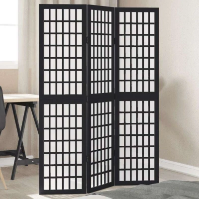 Room Divider 3 Panels Black Solid Wood Paulownia vidaXL