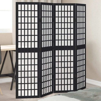 Room Divider 4 Panels Black Solid Wood Paulownia Vidaxl