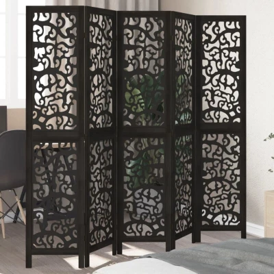 Room Divider 5 Panels Black Solid Wood Paulownia Vidaxl