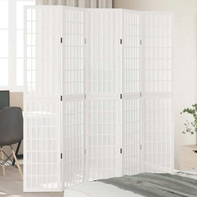 Room Divider 5 Panels White Solid Wood Paulownia Vidaxl