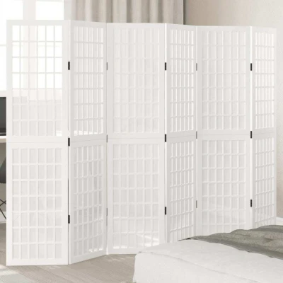 Room Divider 6 Panels White Solid Wood Paulownia Vidaxl