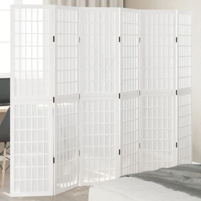 Room Divider 6 Panels White Solid Wood Paulownia Vidaxl
