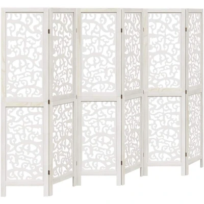 Room Divider 6 Panels White Solid Wood Paulownia vidaXL