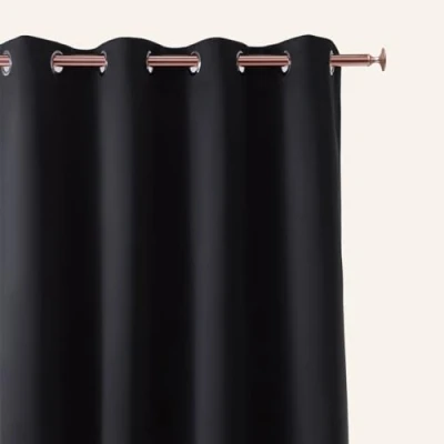 ROOM99 Aura Blackout Curtain, Silver Eyelet 140 x 260 cm, Sliding Modern Decoration, Living Room, Bedroom, Black