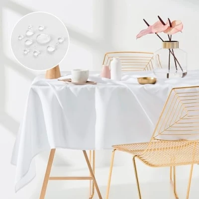 ROOM99 Aura Stain Resistant Tablecloth, Washable, Waterproof, Resistant, Polyester, Rectangular, Banquet Decoration for the Year Round (White, 140 x 240 cm)