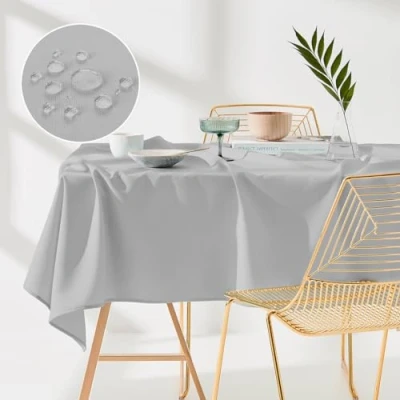 ROOM99 Aura Tablecloth, 110 x 160 cm, Stain Protection, Washable, Water Repellent, Dirt Polyester, Rectangular, Banquet Decoration, All Year, Light Grey