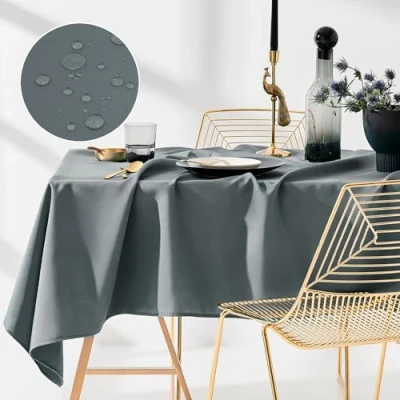 ROOM99 Aura Tablecloth, 130 x 180 cm, Stain Protection, Washable, Water Repellent, Dirt Polyester, Rectangular, Banquet Decoration, All Year, Dark Grey