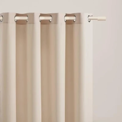 ROOM99 Curtain with Silver Eyelets Aura 180 x 260 cm Width Height Sliding Curtains Modern Living Room Bedroom Cream 1 Piece