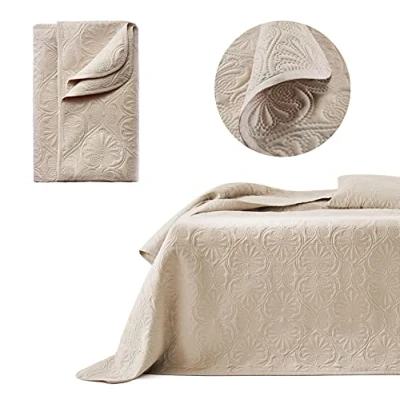 ROOM99 Leila Elegant Beige Bedspread 240 x 260 cm Versatile Blanket for Bed or Sofa Quilted Style, Ideal as a