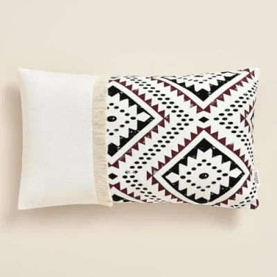 ROOM99 Soho 30 x 50 cm Decorative Cushion Cover Throw Aesthetic Modern Bedroom Living Room Boho Cotton with Fringes Ecru, 1 Piece