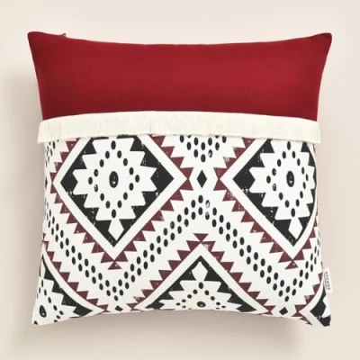 ROOM99 Soho 40 x cm Decorative Cushion Cover Throw Aesthetic Modern Bedroom Living Room Boho Cotton with Fringes Dark Red Pack of 1