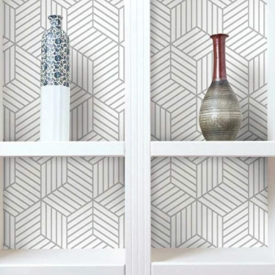 RoomMates RMK10705WP Metallic Silver Striped Hexagon Peel and Stick Wallpaper