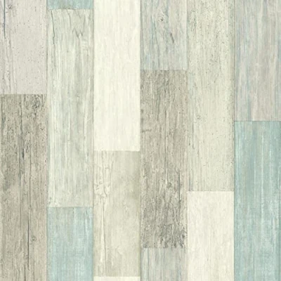 RoomMates RMK10840WP Coastal Weathered Plank Blue and Tan Peel Stick Wallpaper 20.5" x 16.5 feet