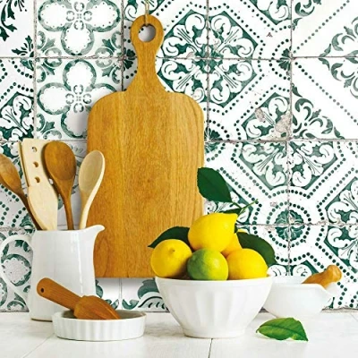 RoomMates RMK11281WP Forest Green Mediterranean Tile Peel and Stick Wallpaper