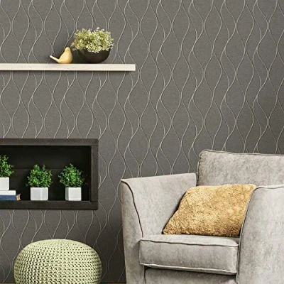 RoomMates RMK11294WP Gray and Metallic Silver Wave Ogee Peel Stick Wallpaper